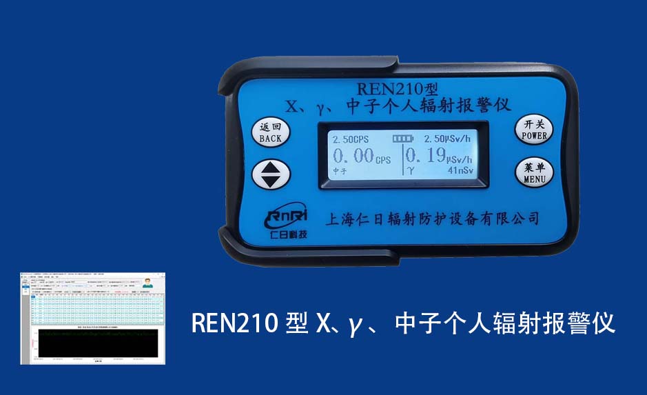 REN210型X、γ、中子個人輻射報警儀內(nèi)置SiPM和鋰玻璃晶體組成中子探測器儀器,采用反照率方式探測中子射線,同時也能探測X、γ射線。因此它可同事監(jiān)檢測X、γ、中子三種射線。能顯示工作場所的劑量當量率和累積劑量,更換電池時,日期及累積數(shù)據(jù)能永久保存。可選配RenRiPersonal個人劑量管理軟件,該軟件可存儲多個人的歷史數(shù)據(jù),能記錄日累積、月累積、年累積、輻照時長、計算平均劑量率、扣除或不扣除本底輻射,且以文字和圖譜的方式展現(xiàn)數(shù)據(jù)。廣泛應用于環(huán)保、化工、水泥、煤礦、土木工程、石油、醫(yī)院、疾控、進出口商檢、核電、加速器、機場、中子源庫和其他安檢、邊境控制海關檢測等